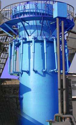 浮選柱則是在上個(gè)世紀(jì)六十年代問世,風(fēng)靡一時(shí)的一種帶充氣器(氣泡發(fā)生器)的圓柱形筒體(亦可是正方形或矩形柱),筒體內(nèi)附有給礦裝置,泡沫溢出或刮出裝置以及泡沫槽、壓縮空氣輸入管網(wǎng)和風(fēng)包等。