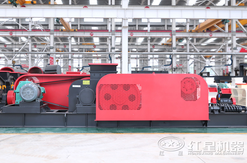 出料粒度的調(diào)節(jié):兩輥輪之間裝有楔形或墊片調(diào)節(jié)裝置,楔形裝置的頂端裝有調(diào)整螺栓,當(dāng)調(diào)整螺栓將楔塊向上拉起時(shí),楔塊將活動(dòng)輥輪頂離固定輪,即兩輥輪間隙變大,出料粒度變大,當(dāng)楔塊向下時(shí),活動(dòng)輥輪在壓緊彈簧的作用下兩輪間隙變小,出料粒度變小。墊片裝置是通過(guò)增減墊片的數(shù)量或厚薄來(lái)調(diào)節(jié)出料粒度大小的,當(dāng)增加墊片時(shí)兩輥輪間隙變大,當(dāng)減少墊片時(shí)兩輥輪間隙變小,出料粒度變小。